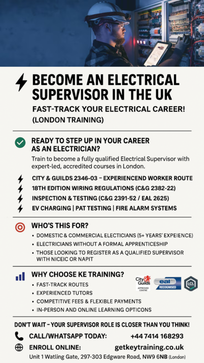 Become an Electrical Supervisor in the UK - Education, training, lessonsRef. number: 3188660 Updated: 07-04-2025 20:28