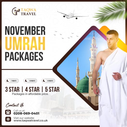 November Umrah Packages 2025 | Taqwa Travel UK - Travel services, transportation servicesRef. number: 3204910 Updated: 29-09-2025 15:07