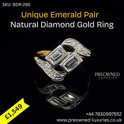 Order online: https://preowned-luxuries.co.uk/shop/productdetails/unique-emerald-pair-natural-diamond-18k-gold-ring
